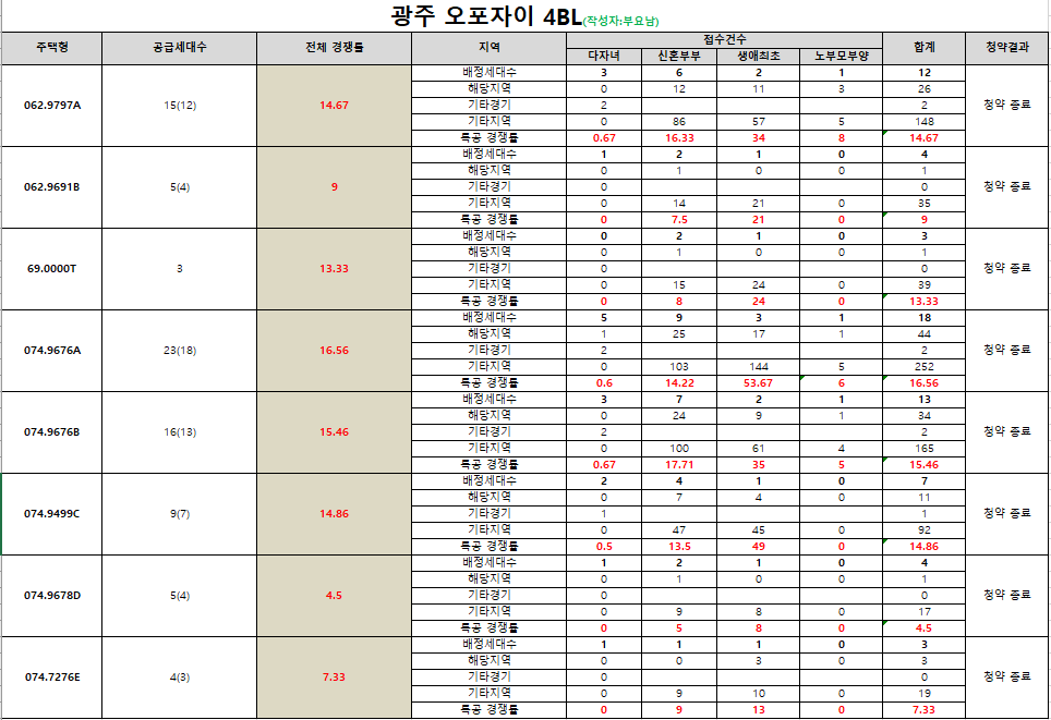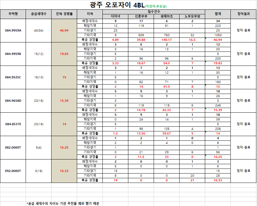 금일 오포 자이 특별공급 3BL,4BL 경쟁률이 나왔습니다.