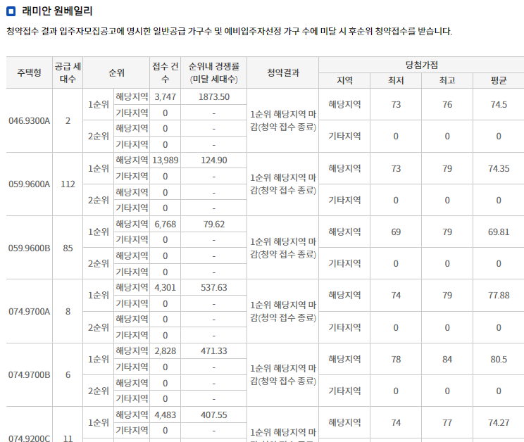 오늘 강남 래미안 원베일리 1순위 경쟁률 및 가점 컷 나왔습니다..