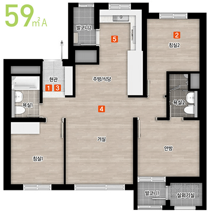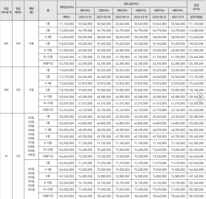 - 평형은 59A, 59B 그리고 74형이 있습니다.