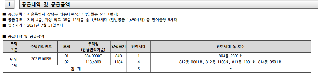 개포 디에이치 자이 무순위 5세대(84-1, 118-4) 소개해드립니다.