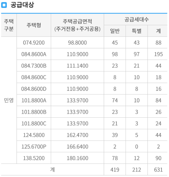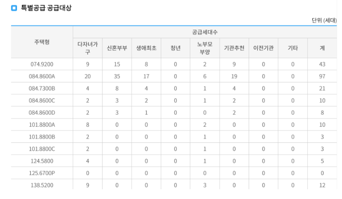 : 특별공급에서는 84A에서 많은 세대수를 가져가고 있습니다. 결국 84A가 뽑는사람이 많을건데