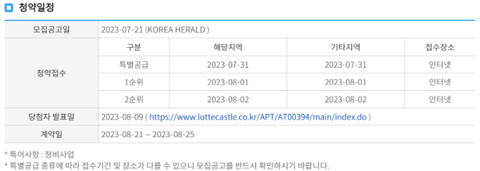 일정은 특별공급, 1순위만 생각하시면 됩니다. 이 입지에 2순위까지 갈일은 없다.