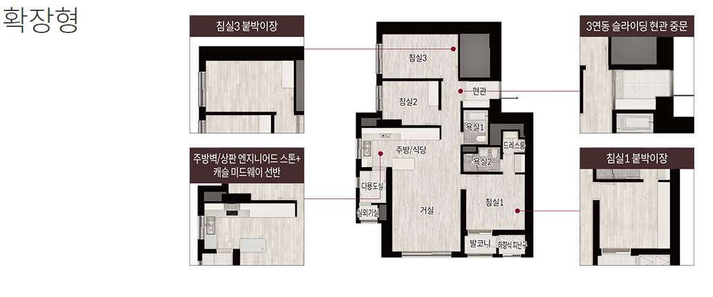 - 84D 판상형(A와 다른점은 발코니2 추가, C랑 다른점은 발코니2 위치 다름)