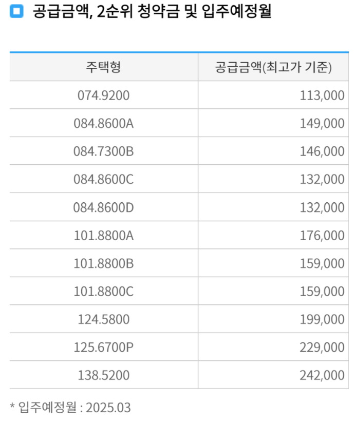 2. 특별분양/일반분양 공급일정
